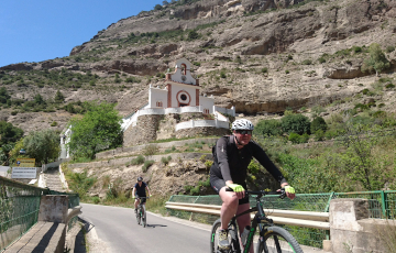 This is a long road ride, recommended with e-bikes, through mountain landscapes, two small villages and on to the region known as Andalucia’s 'Lake District'. The route follows a twisting mountain road with amazing views, then an undulating route through pine forests, and finishes with a descent through strange weather-worn rocks down to the gorge at El Chorro, 120m tall and only 4m wide at the narrowest parts of the base. SELF-GUIDED (with preloaded GPS. Security deposit €25 per bike) 4-7 pax: €80 p.p. 2-3 pax: €100 p.p. GUIDED 4-7 pax: 115 p.p. 2-3 pax: €145 p.p. Upgrade to electric bike: +€15 per bike |